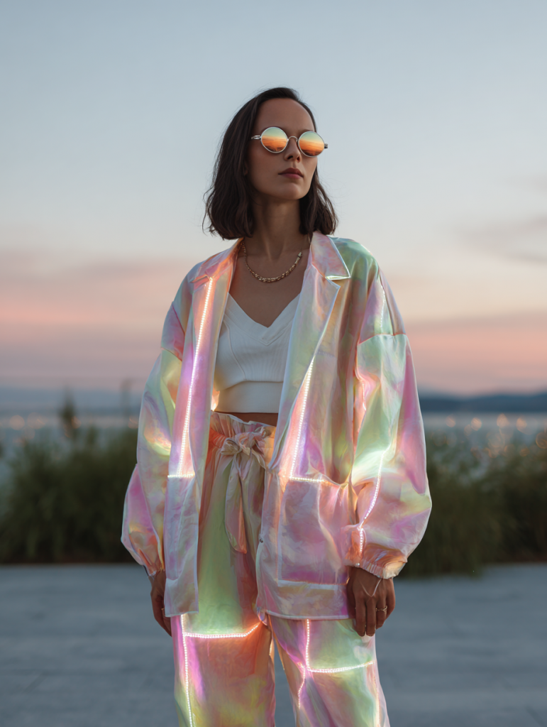 Futuristic looks are now in our daily clothes. Designs that seemed like sci-fi are now real. You can find LED-infused clothing and color-shifting fabrics everywhere.