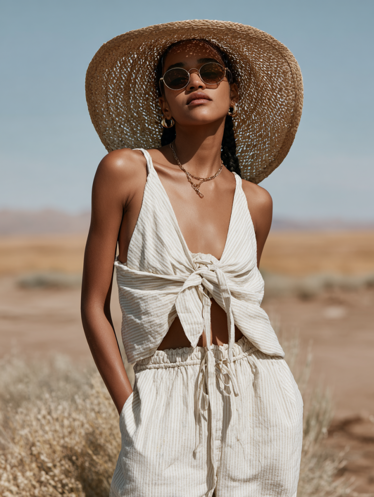 This summer, look for clothes made from organic cotton, recycled polyester, and Tencel. These fabrics are good for the earth. They’re also comfy and cool, great for chic summer ensembles 2025.